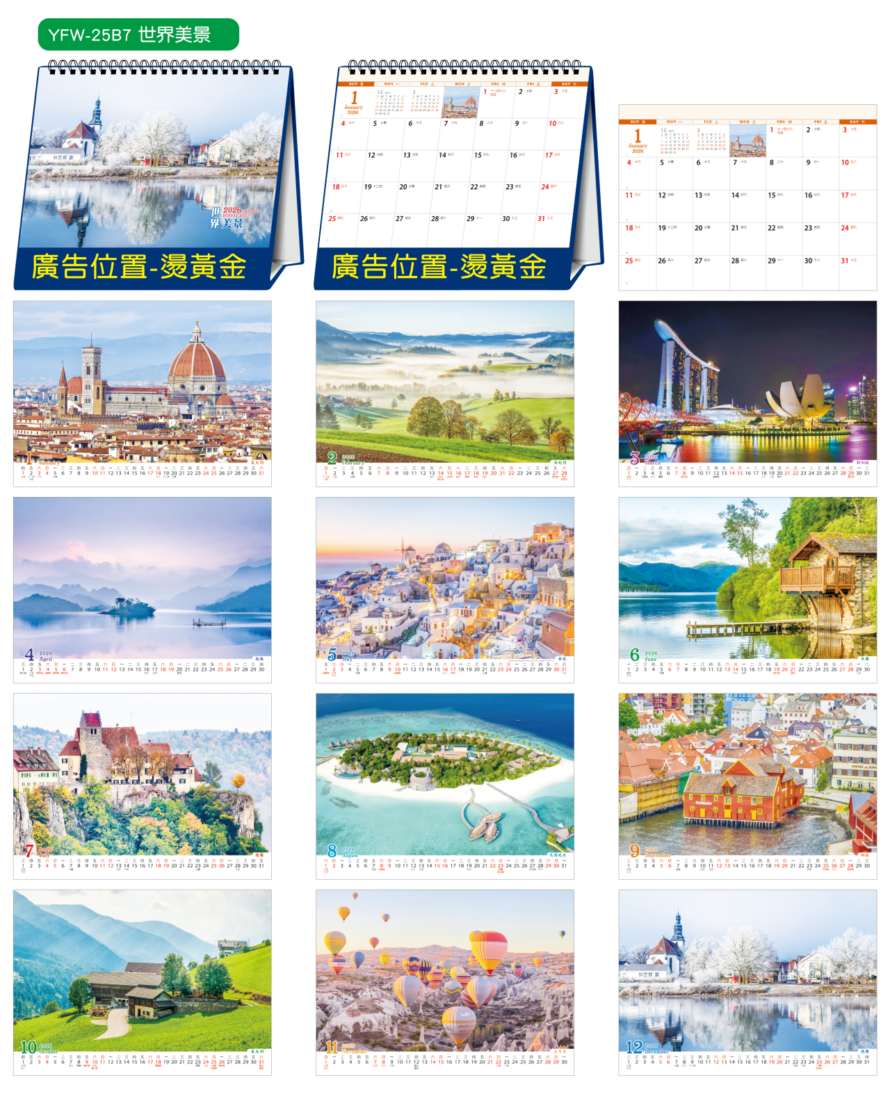 裝訂 : 雙線圈 紙張 : 180P特銅紙 ※ 正面月表,背面彩圖 配 件:附OPP袋